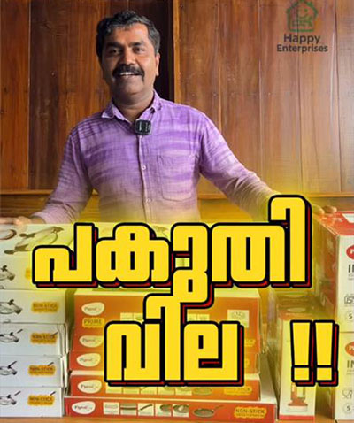 Up to 50% OFF on top kitchen appliances—only at Happy Enterprises, Periya. Make this Onam special with the perfect home upgrade. Mixer grinders, cooktops, pressure cookers, non-stick sets & more—all at half the price